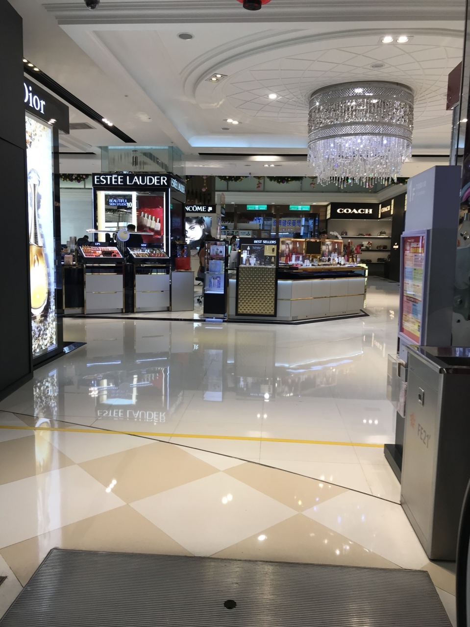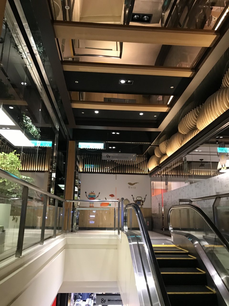 比較的天井が高く、ゆったりとしている感じ。ただし、モールのちょうど真ん中に位置し、エスカレーターの目の前にあるため、フードコートよりも混雑している。