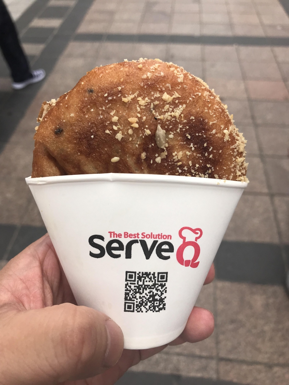 釜山名物「シア」入りのホットク お店の名前である「スンギ」は韓国俳優イ・スンギが食べて絶賛したからとのこと