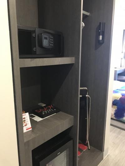 1ベッド(ダブルベッド)の部屋に宿泊。エレベーターはセキュリティカードが必要なので安心。部屋は広い方では無いが、1泊~2泊程度であれば全く問題無し。ベッドはスプリングの調子も良く、枕横にコンセント、USB(主にスマホ用)があって便利。