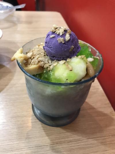 また、ハロハロはウベのアイスクリーム、フィリピンのプリン、ナタデココなどが粗めの氷の上にのっていて、ぐちゃぐちゃに混ぜて食べると美味しい。この店のハロハロが人気と聞いていたが、正解。- 旅行時期