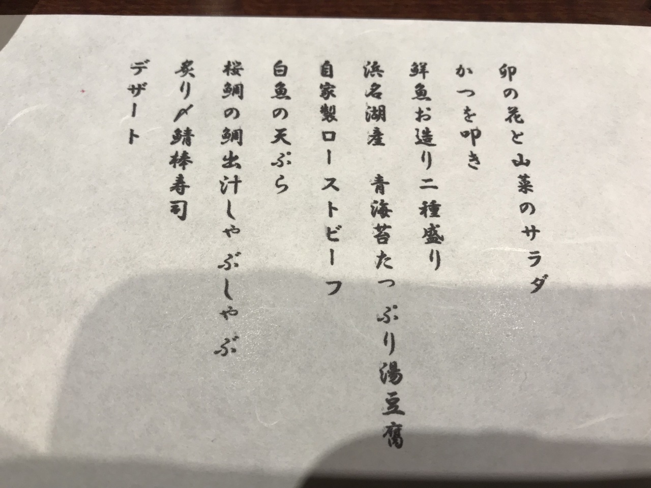 なお、テーブルには箸と一緒にコースの献立が書かれた紙が置いてあったり、価値以上の価値あり。- 旅行時期