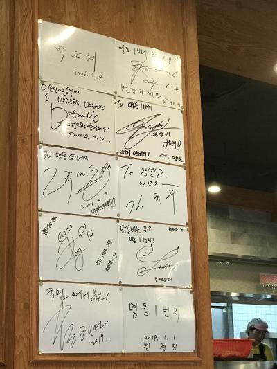 平日の13時過ぎ、いくつか店を探した中で一番混雑していたのでここに決定。店内には芸能人と思われるサインが(どこの店にもありますがね)