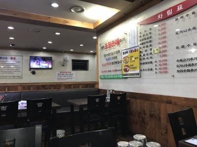 お店は一般的な韓国の食堂の雰囲気。お店の前でスープをぐつぐつ煮ているせいなのか、ランチタイムは行列していることも。