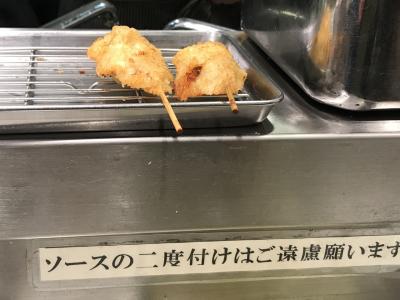 JR新大阪駅改札内エキマルシェ新大阪内にあります。新幹線や特急乗車前に串カツが楽しめるが、新幹線の改札に入ってしまうと行く事が出来ないので注意。
