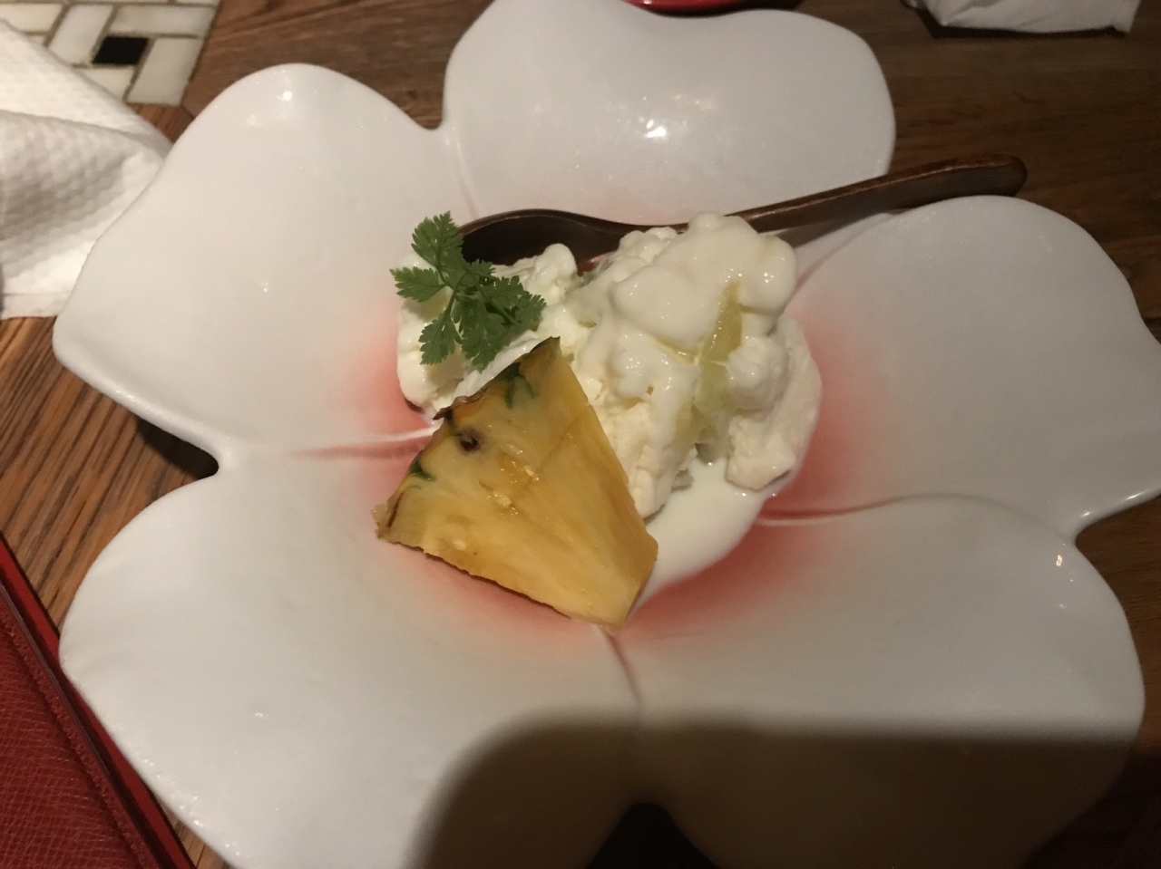 ちなみにデザートとしてメロンアイスクリームを頂きましたが、冷たい鉄板で叩きながら混ぜるスタイル(某アイスクリーム店のよう)。メロンの香りが良い感じでした。