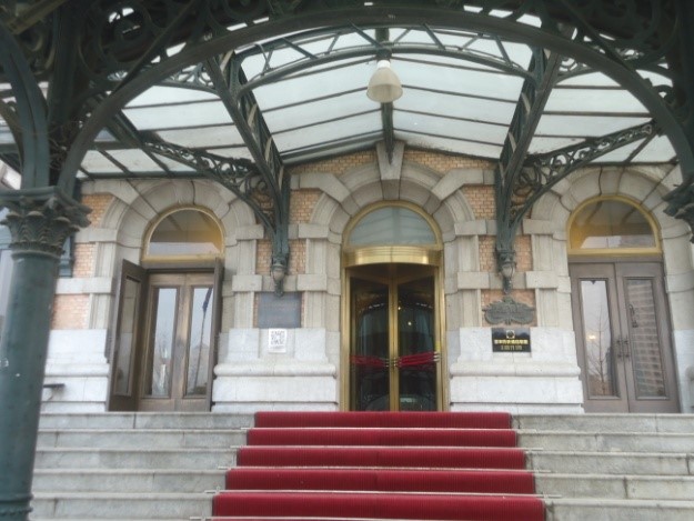 大連賓館の隣にあり、モダンな建物だが、何となく日本建築の感じも。京都の府庁舎旧本館と同じ方が設計したそうで、京都らしく祇園祭の出車を模した塔屋があります。