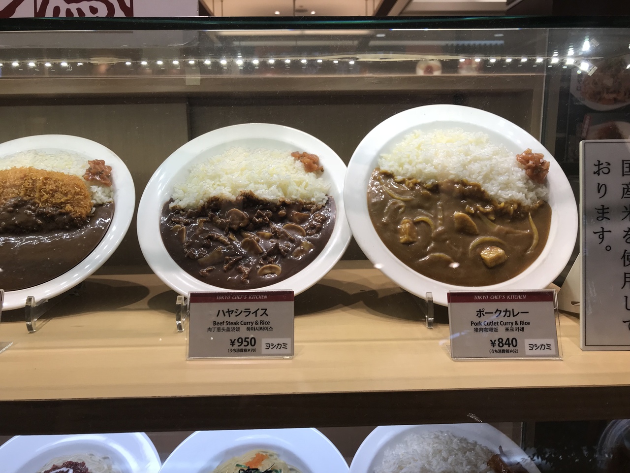 フードコート内なのでカレー、ハンバーグ、カニクリームコロッケなどが中心。ただし、ハンバーグやカニクリームコロッケは単品注文が可能で、ビールのつまみにすることも可能。