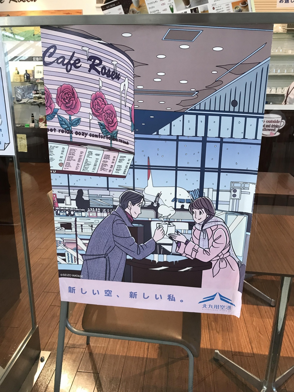北九州空港2階にあるカフェ。エスカレーターを降りてすぐにある。