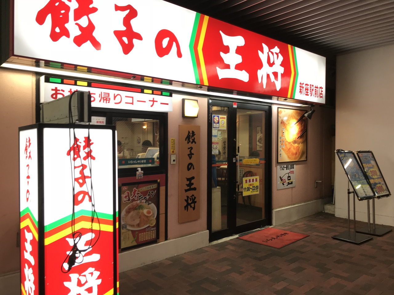 JR武蔵野線新座駅すぐのげんき一番街というアーケードの中にあります。店の上は電車が走行している模様。