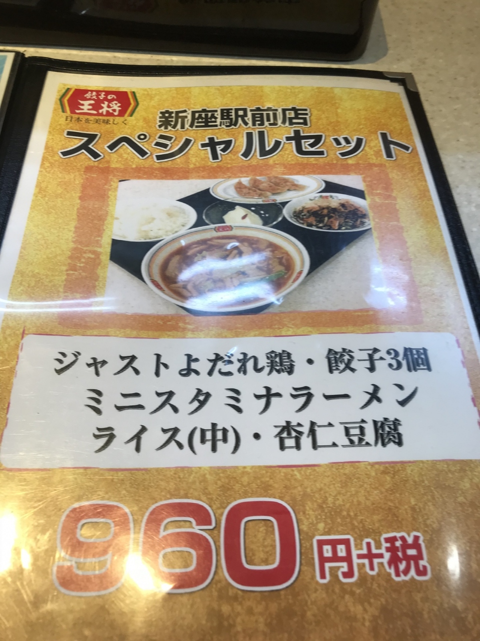 なお、新座駅前店スペシャルセットとして、ジャストよだれ鶏、餃子3個、ミニスタミナラーメン、ライス中、杏仁豆腐のセットがある。- 旅行時期