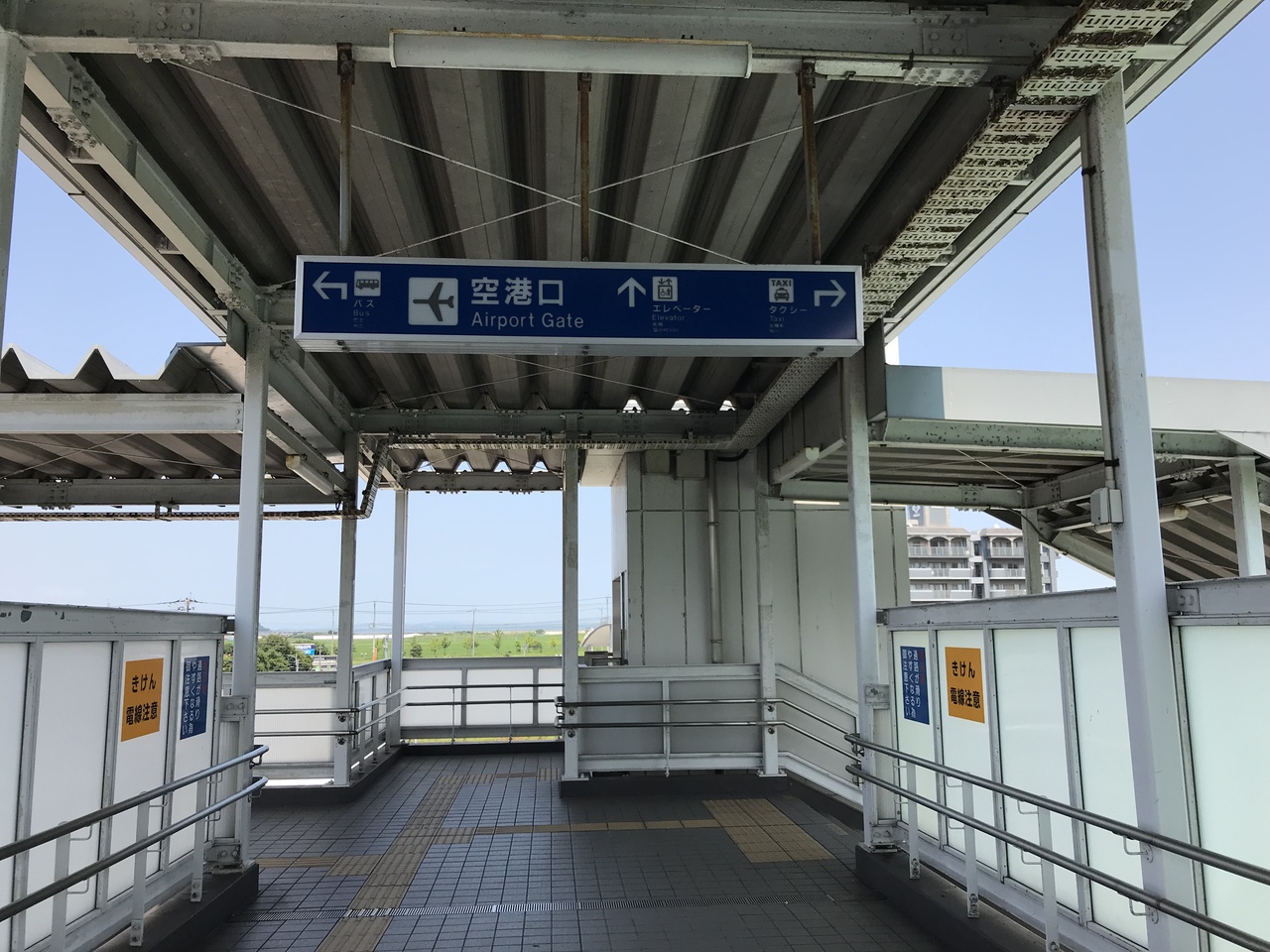 改札は一つ、出口は空港口と西口の2つあり。どちらの出口を出ても近隣には特に何も無く、住宅地が広がる。