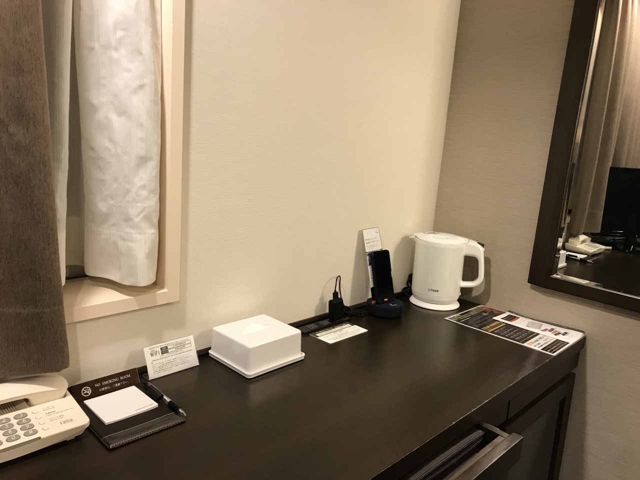 シングルルームの宿泊でしたが、ベッドは大型。WiFi、有線LANに加えHANDY(無料の携帯電話)もあり。また空気清浄機が部屋に置いてあったのも嬉しい。