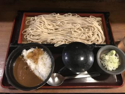 券売機で食券を購入。メニューがたくさんあって、何を選んでよいのか正直苦労。肉つけそばが人気らしいのだが、基本のざるそばとミニカレーのセットに。蕎麦は二八、店内で挽いているらしい(お店の前に機械が展示されている)。麺は普通の店よりも太め、つるつるしている感じも普通の立ち食い蕎麦では出会えない。麺がもう少し短ければもっとよかったが。
