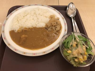 注文は食券制。カレーうどんにも惹かれるが、定番のビーフカレーを購入(ポークカレーは無い)。大阪のカレーライスの店らしく、生卵トッピングもOK(別料金)。なおフードコートなのか福神漬はカウンターでセルフにて。