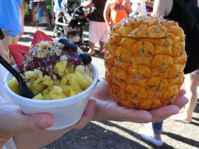 パイナップルをそのままくり抜いたジュースやアワビが安く頂けます。