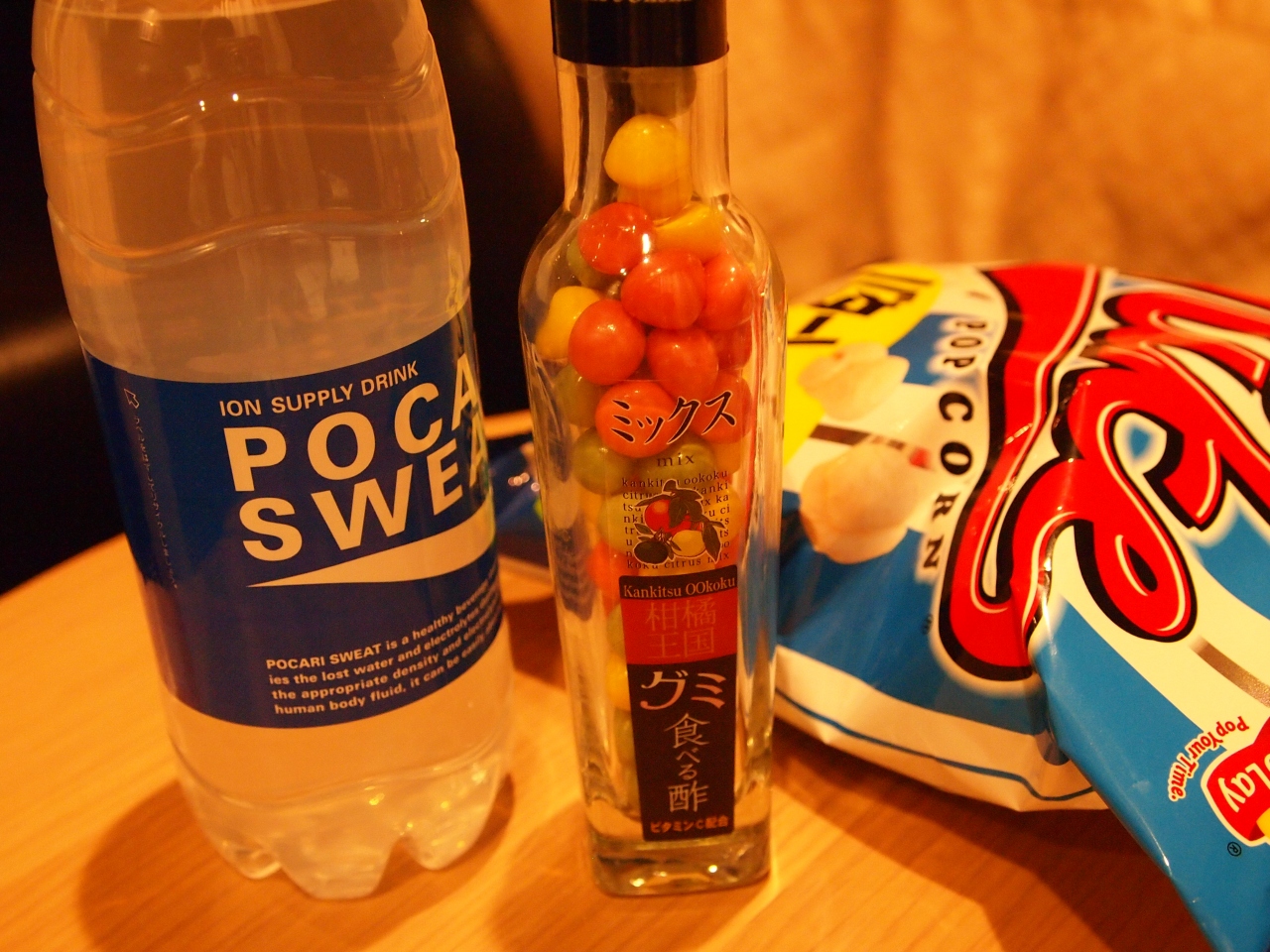 みかんジュースなどが一般的ですが、おススメは「食べる酢グミ」で最高に病みつきになります。