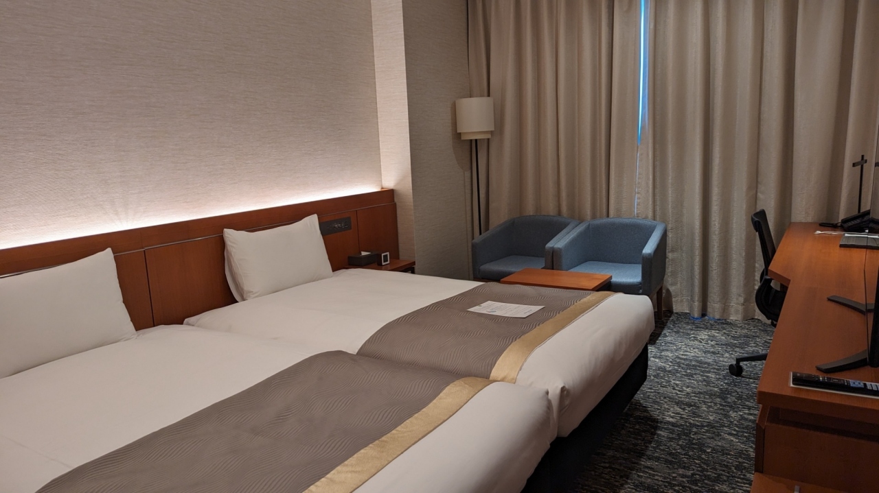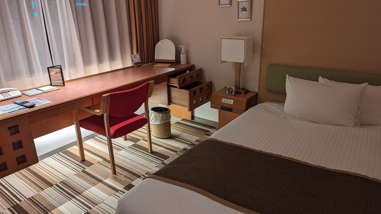 窓側に一面の作り付けデスクがあり、食事や作業をするにも広々と使え、部屋の広さと相まってゆったりと滞在できました。- 旅行時期