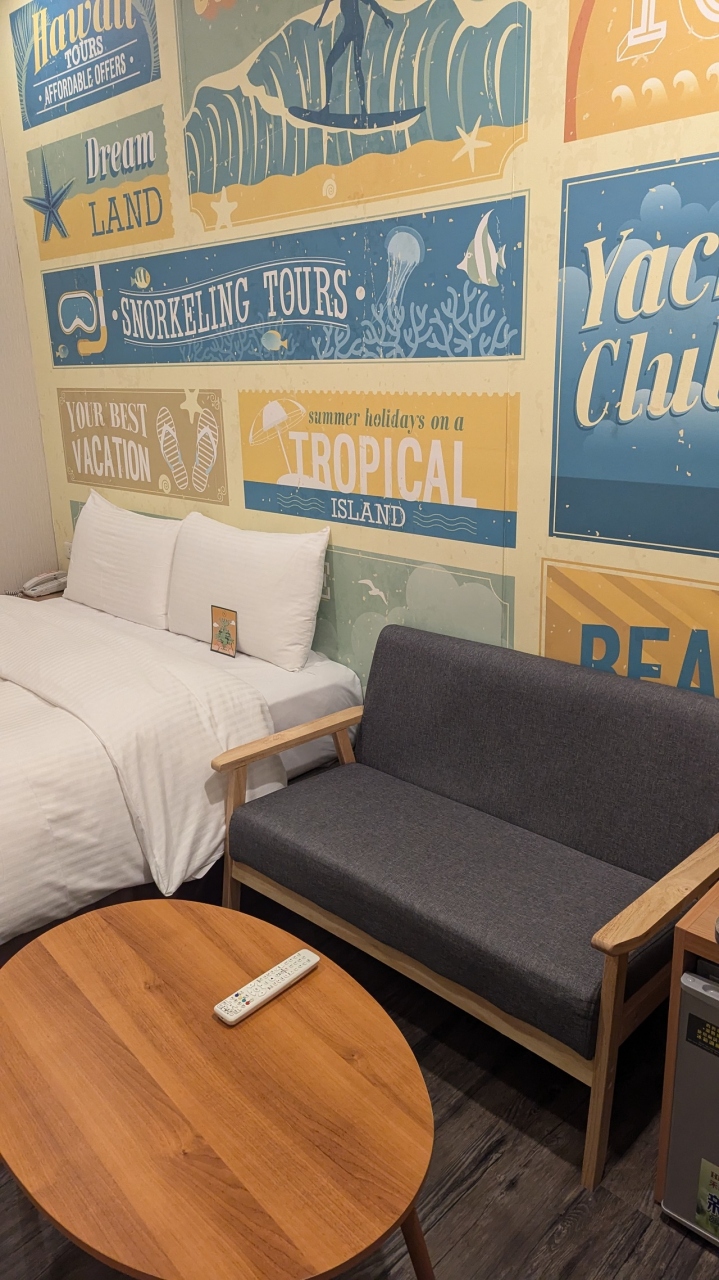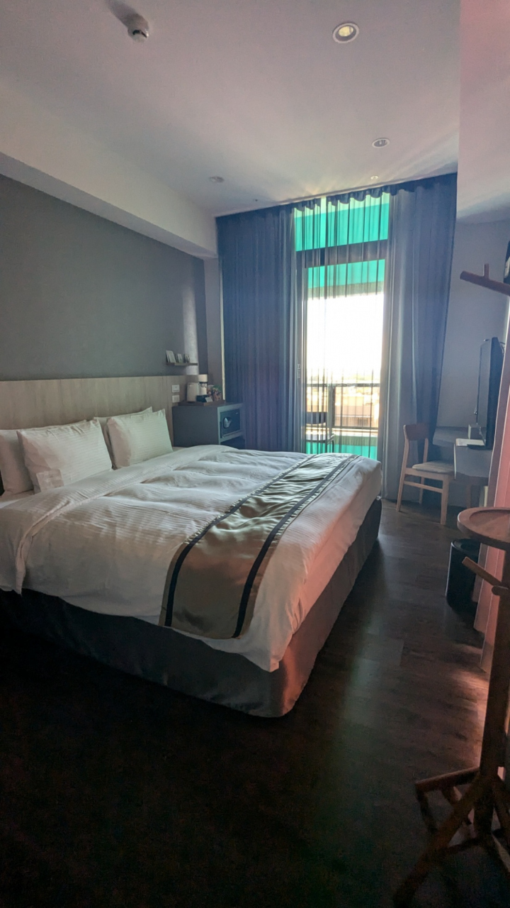 街中から少し離れたこちらのホテルは旗津行きのフェリー乗り場や駁二芸術特区の散策に便利でした。部屋指定なしの一番お安いプランでしたが、アサインされた部屋はダブルルームで広さも十分でした。部屋には小さなベランダが付いており椅子もあるのでくつろぐこともできます。ただ、9月の高雄は暑くて暑くて…お部屋の冷蔵庫にはサービスのコーラやスポーツドリンクがあり、お茶やコーヒーのパックもあります。お水はボトルが置いてあり各階に設置されたウォーターサーバーを利用します。コンビニは少し離れていましたが、近くにスーパー(全聯)もあり便利でした。コインランドリーも利用しましたが、清潔で安心でして使えました。フロントの方は英語での対応ですがとても感じよく、また泊まりたいホテルです。
