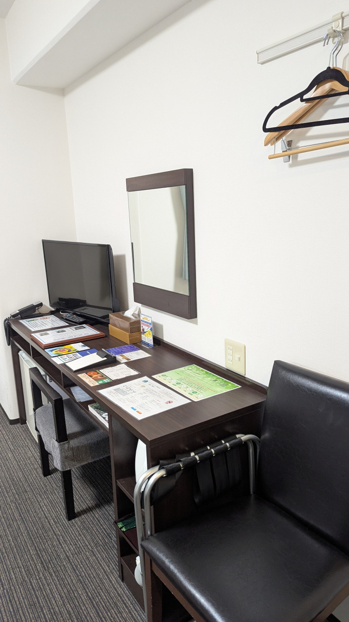 5つの条件をすべて満たしたうえ、コインランドリーは無料。朝食付き。1Fに24時間利用可のコーヒーサーバーやスナック菓子あり。フロントでは日本語でチェックインでき、レストランやお掃除のスタッフも感じよく日本語でご挨拶をしてくださる。お部屋は10㎡で超コンパクトですがテレビ、冷蔵庫や金庫、ハンガーなど必要なものはすべて揃っています。料金は1泊8,800円ほどでした。