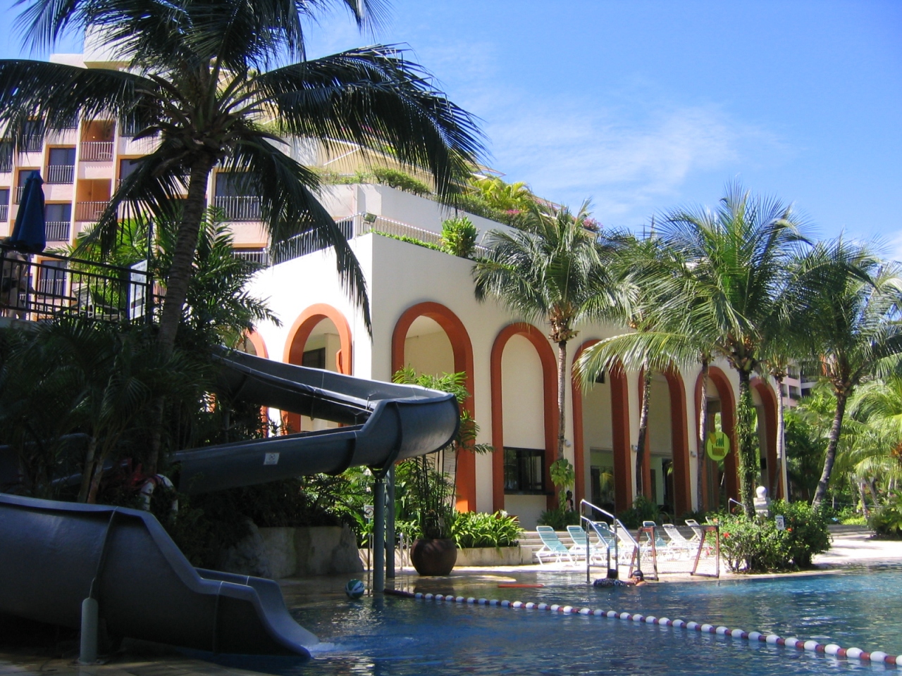 もう一方はスライダーが付いたプールで、元気な子供の歓声が聞こえます。