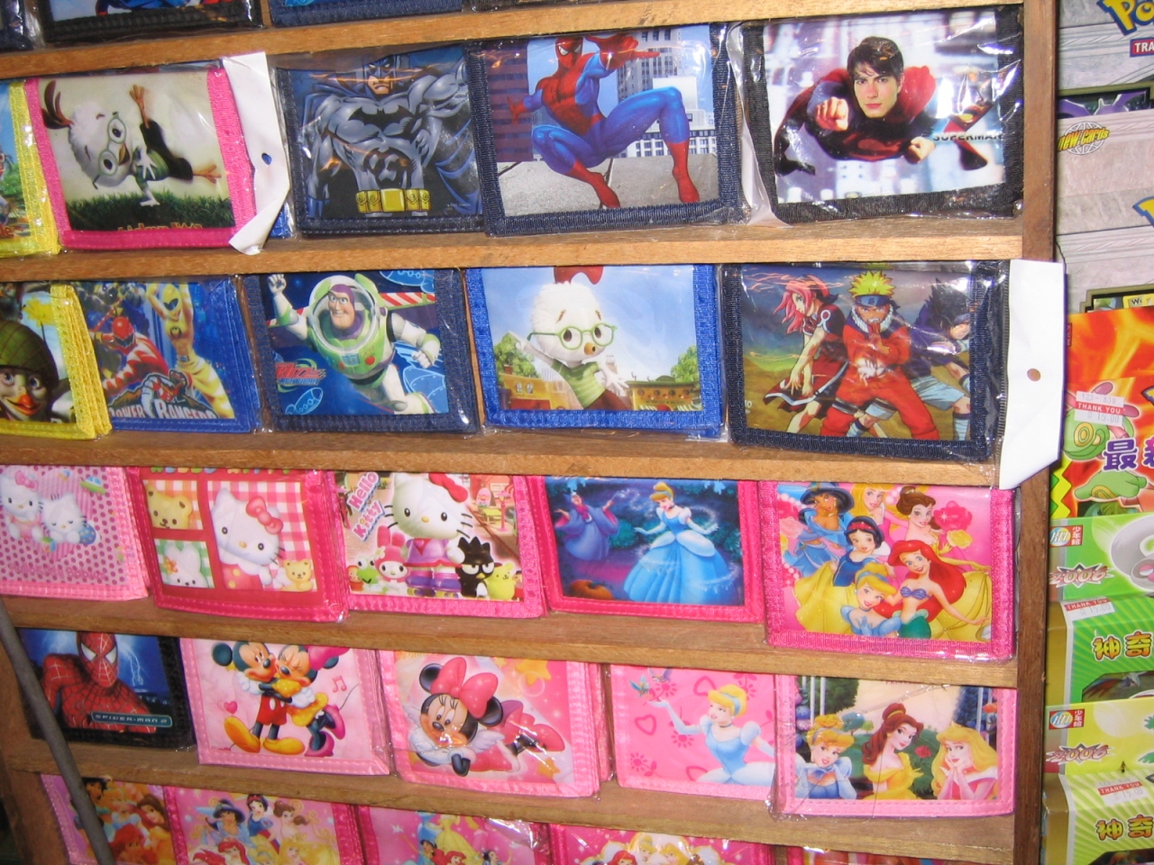 オモチャ屋さんもあってディズニーやキティなどのキャラクター財布がズラリと並んでいました。