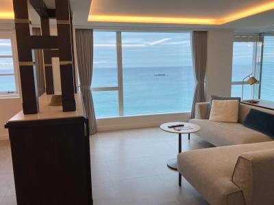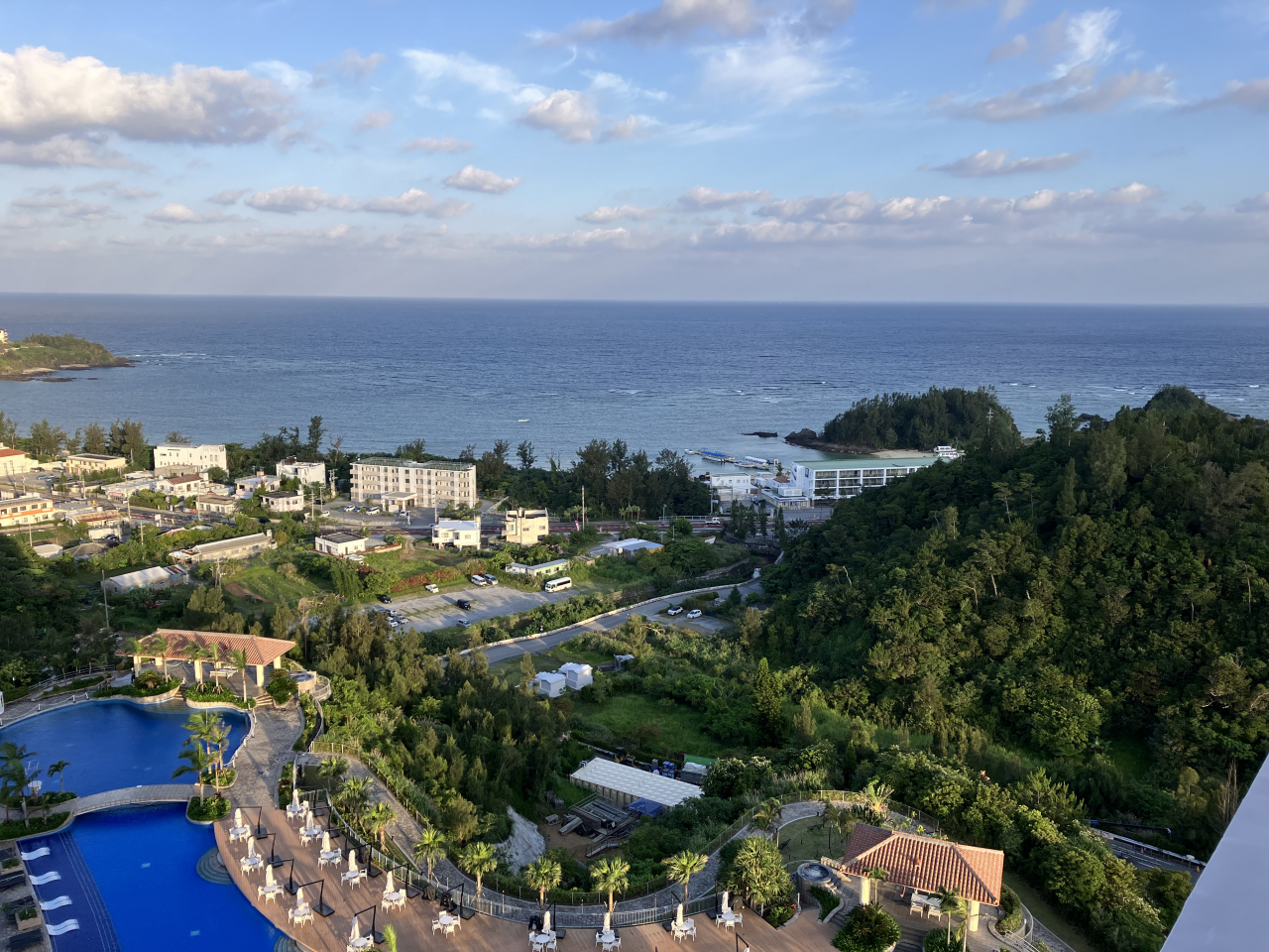 訪問時は天気がいまいち(到着時くもり、出発日雨)だったのですが、曇りでも部屋から海をみおろす眺めは絶景でした。窓がとても広くとられているので、バルコニー無しの部屋でも絶景。
