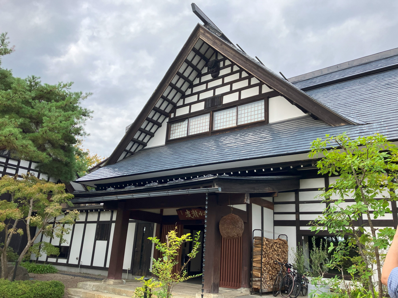 赤湯駅から送迎あり。街中にあるが建物はどこかから改築したとかで、古くて由緒ある建物をリノベーションしていて、館内の案内はピクトグラムを使っておしゃれな雰囲気。ただし、古いのでエレベーターは無し。