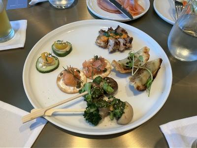 朝食は量たっぷりだったし、カクテルタイムは生野菜、パン、ハム、チーズなどのコールドミートのほかに、カナッペなどのプレートが1皿サービスされる。お酒は飲みたいけどお料理はそんなに食べられない私たちにはちょうど良い量。それなりのお値段だったけど、満足できた。