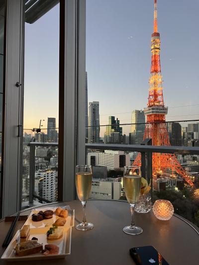 何回目かの、朝食付きのプランでクラブフロアに宿泊。クラブフロア利用だとラウンジが利用できて、お酒とつまみさえあれば夕食はたいして量がなくても大丈夫な私たちにはありがたい。しかもここには温泉大浴場があって、クラブフロアなら無料で利用できるのも〇。今回も、ひと風呂浴びてから東京タワーの冬バージョンライトアップを見ながらおいしくお酒をいただいてきました。冬は早くから日が暮れるからライトアップが長く楽しめるのもよい。