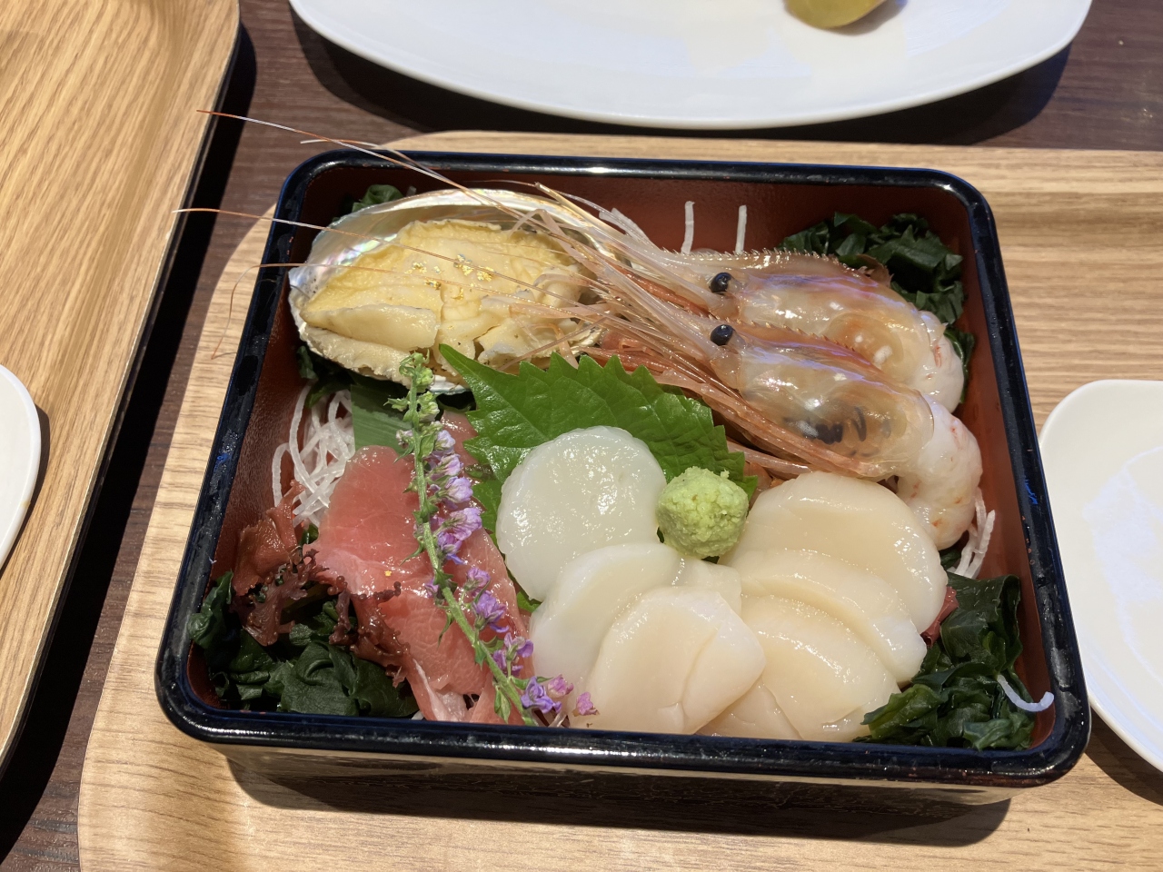函館のホテルは朝食戦争とか言って、朝食の豪華さを競い合っていると聞いたけど、納得の朝食だった。特にプレミアム得点でついてきた海鮮重は、満足。旅行記によってはほかに取りたいものがいっぱいあるから無くてもいいと言っている人もいるけれど、うち的には好みの内容、ブッフェの海鮮よりちょっと中身が豪華だし。ブッフェにはスパークリングワインもあって、これも大満足。呑み助は行くべし。
