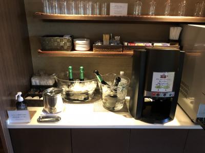 星の棟に宿泊。星の棟の宿泊者が使えるクラブラウンジがあり、コーヒーやウーロン茶などのドリンクサーバーに加え、15:00から19:00はハッピーアワーでビールとスパークリングワインがいただける。ただ、缶ビールは135㏄と小さめ、すぱーっくリングワインは甘口とちょっと不満が残る内容。