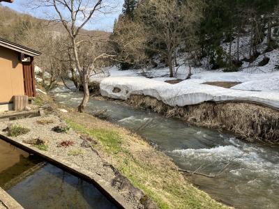 3年ぶりの宿泊。前回の宿泊は1月で、部屋の前を川が流れているとか聞いても見えない、テラスに出る気もしない大雪だったが、今回ようやく周囲の様子を見ることができた。4月半ば過ぎで北上は桜が満開だったのに、西和賀はまだ雪が残っていて山深い宿という感じがなかなか良いと思った。大浴場はないが、無料の貸切風呂が2回借りられて、雪の残る川岸を眺めながらの露天風呂も良かった。