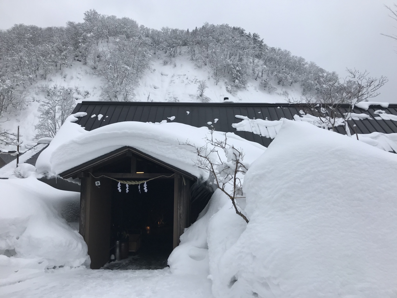 北上線のほっとゆだ駅から湯けむりタクシー利用で15分ぐらいです。雪が多すぎて、外観はさっぱりわからず、車が止まったところに小さな入り口があり、まさかと思いましたが、そこがホテルの入り口でした。