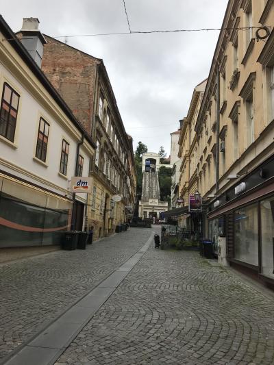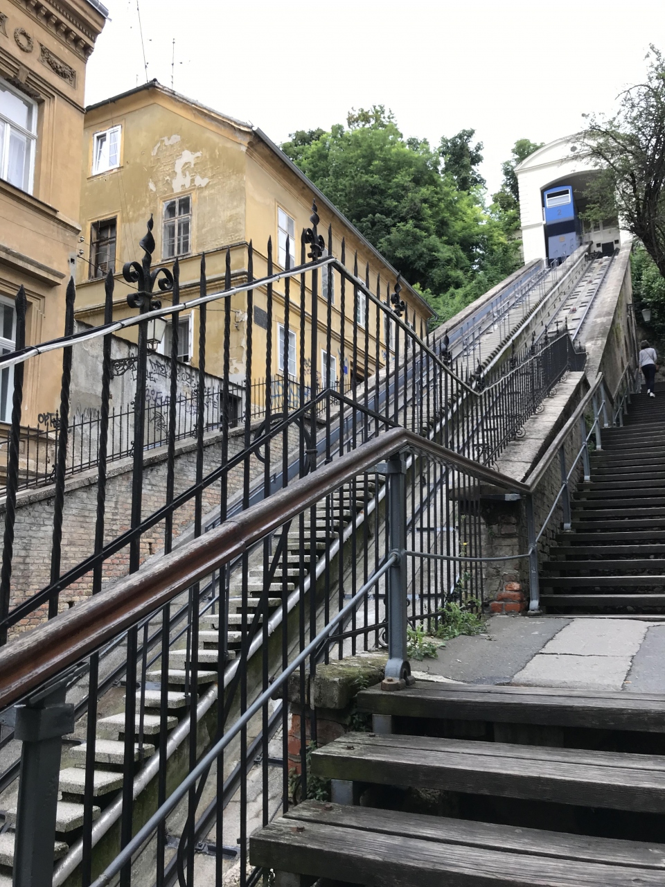 イェラチッチ広場から西に少し歩いて右に曲がるとケーブルカー乗り場があります。その右隣りに並行して登る階段があって、そちらを歩きました。結構急です。