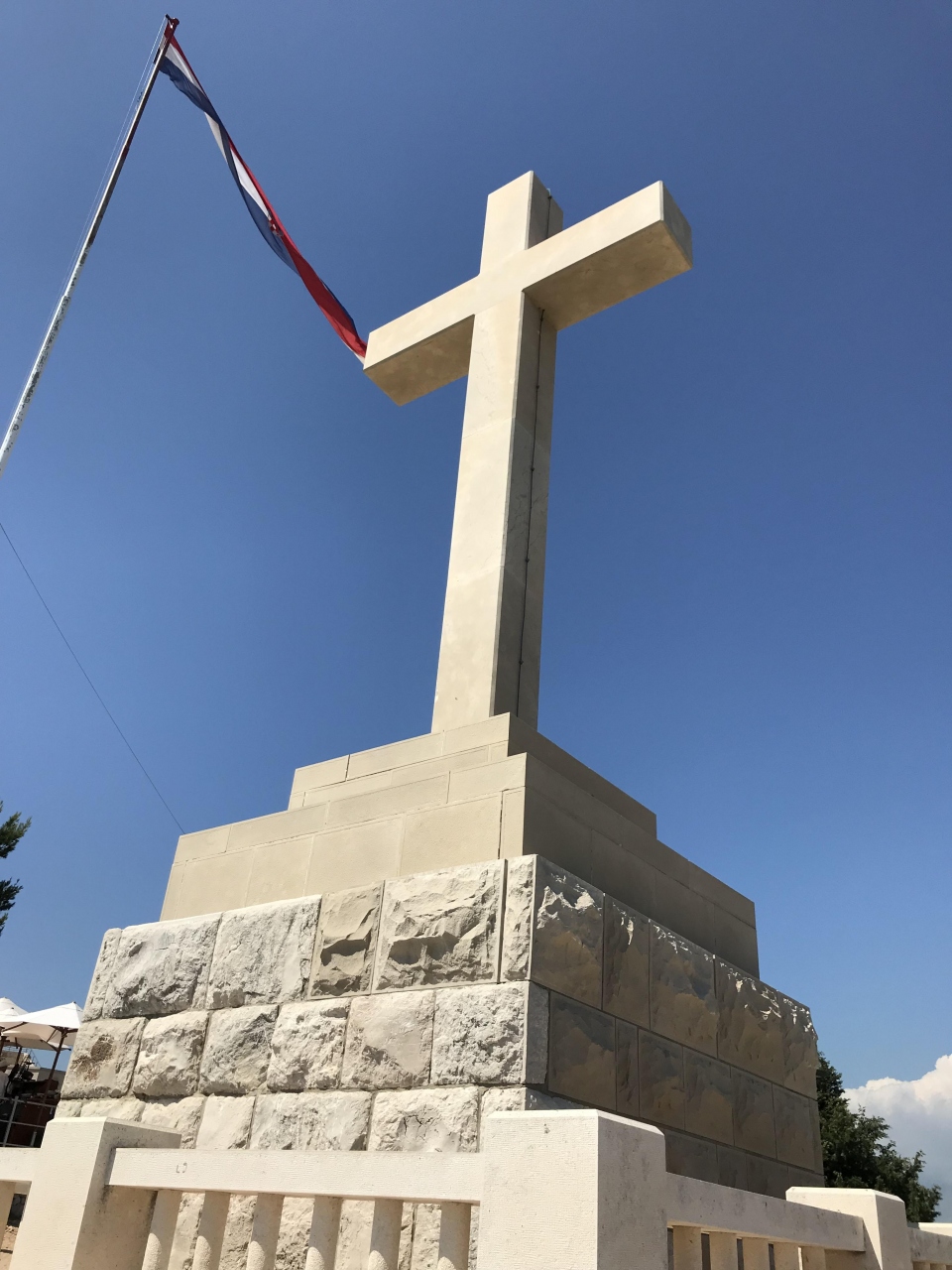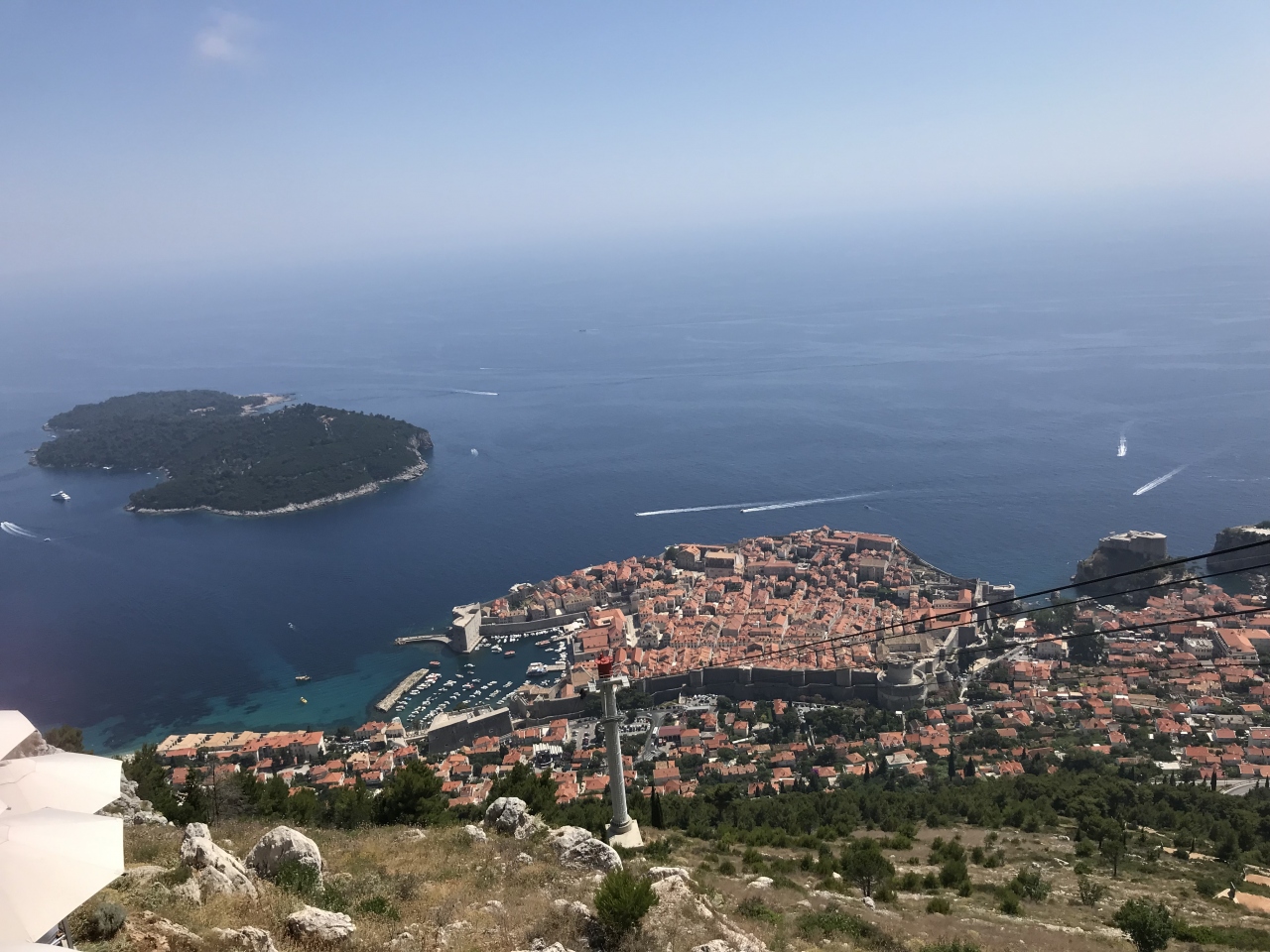7月で、混んでいるんじゃないかとぎりぎりまで行こうかどうしようか迷っていました。ケーブルカーの料金も往復150クーナとバカにならないし、ミンチェッタ要塞からの眺めで十分じゃない?と思いながら、でもこのケーブルカーは6月まで運休していたのが、せっかく再開したし、日本からはるか遠くに来て行かないのもなんだし・・・ということでケーブルカーで登ることに。ケーブルカーは5分ぐらい。あっという間に着きました。ケーブルカー乗り場の展望台にはそれなりの人がいましたが、大きな十字架のあるあたりにぶらぶら歩いていけて、全体的に人ごみは思ったほどではなかったと思います。そして、旧市街より1度は温度が下がったような感じで、風が吹き抜けて気持ちのいい中、街と海を見下ろすことができて、行ってよかったと思いました。