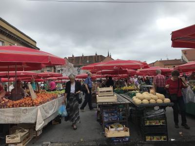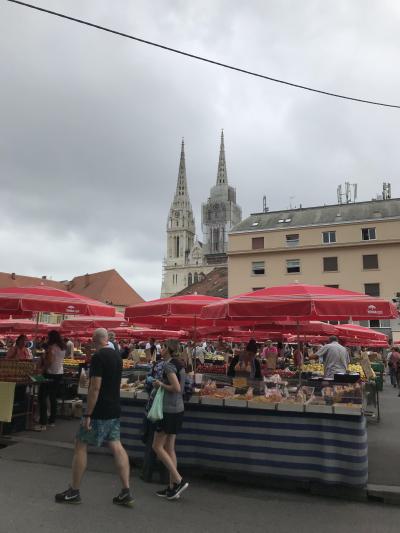 火曜日の午前中でしたが、お店の出店も多く、人でにぎわっていました。野菜や果物だけでなく手作りのチーズやラベンダー、木製おもちゃなど盛りだくさんです。イエラチッチ広場から階段を登って行きましたが、その手前からすでにラベンダーなど売るお店がいくつも出ていました。他のお店と比較できないので値段がお買い得かわかりませんが、かなり安いような感じを受けました。