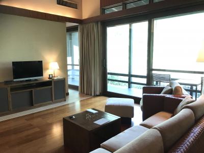 ポツンと人里離れた感じのところにあります。部屋は離れで、カートで送迎してくれました。部屋はスイートタイプで寝室とリビングが別で、ゆったりしていました。露天風呂も完全に外で気持ちよく入れました。
