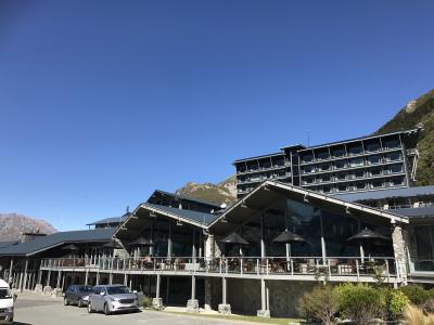マウントクックビレッジの一番奥にあるホテル。客室棟がいくつかあり、泊まるところによってはマウントクックが見えないとかもありそう。フロントでチェックイン後、客室に近い駐車場を教えられるが、行ったら満車だったので、少し坂を下ったところにある駐車場に止めた。チェックアウト後も駐車場に車を止めてトレッキングする人もいるだろうから、駐車場はいつも混んでいた。ツアーも利用するホテルで、大きなバスが出入りしていた。