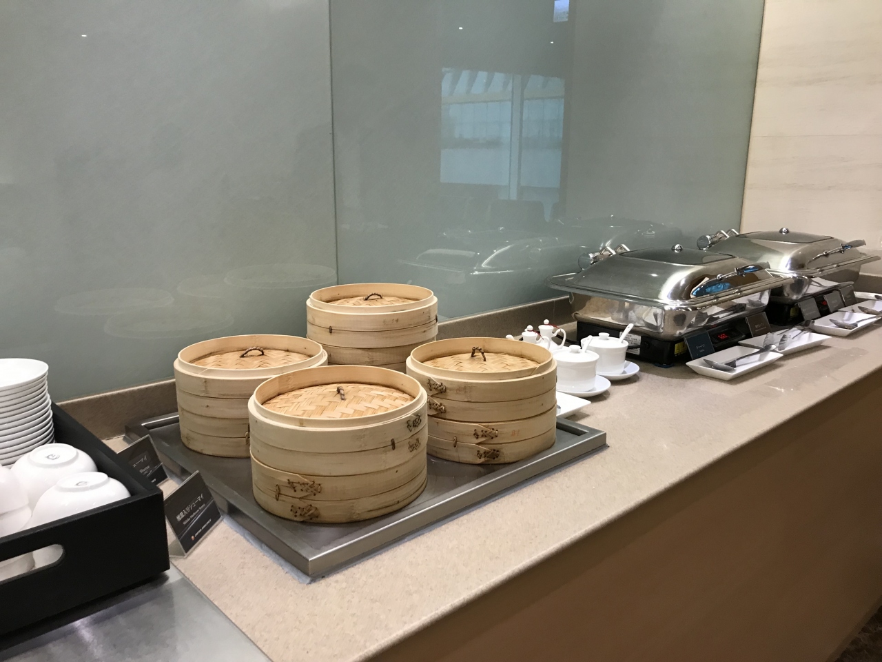 料理はシューマイなどの点心、チャーハン、スイーツ、フルーツ、お味噌汁など一応そろっていて、特にお味噌汁は久しぶりでおいしくいただきました。