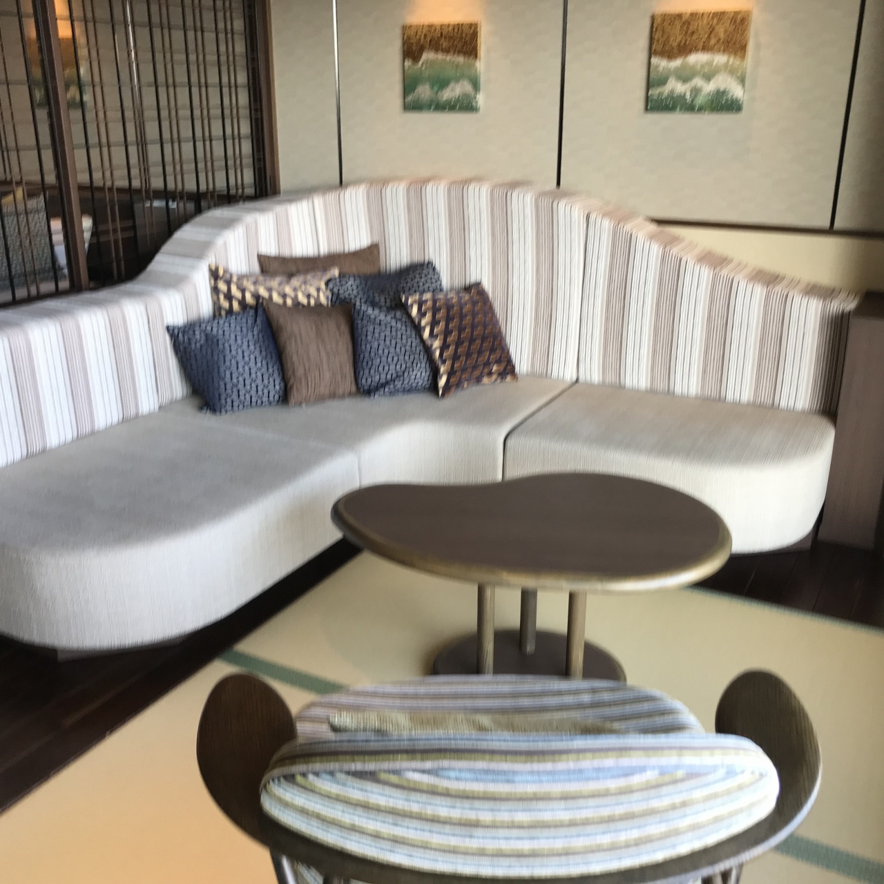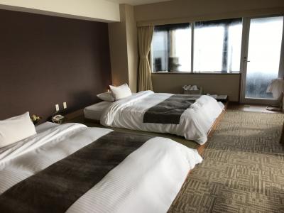 14室しかない宿で、わたしたちの利用した部屋のグレードはそれほど高くないはず、それでも高い。そして部屋はそれほど広くない。どこぞの保養所をリノベーションしたとのことですが、ツインの部屋の奥に謎の部屋がありました。3人目が泊まれる和室らしいが、狭かった。しかし、ターンダウン前にお風呂に入ってバスタオルを使ったりベッドで寝転んだりしていても、ターンダウンの時に全部きれいにしてバスタオルなども換えてくれるあたりさすがです。