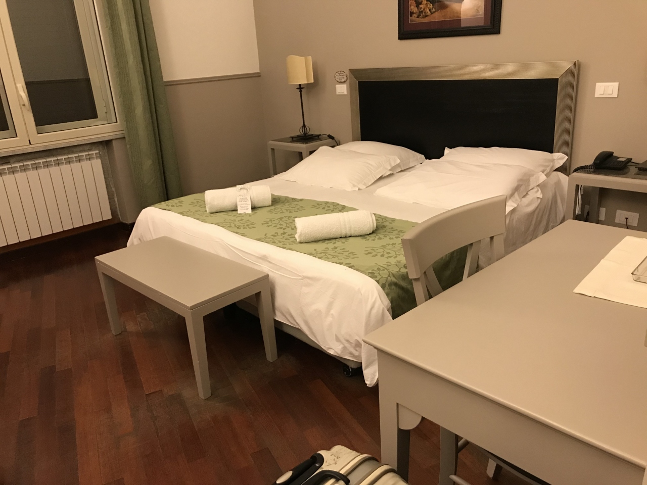 パレルモ駅から徒歩5分ぐらい。入り口が分かりにくい。レセプションから階段をちょっと上がってそこからエレベーターだが、このエレベーターがレトロ。自分で外側と内側の扉を開け閉めする。昔のタイプ。部屋は1階だったので眺望は無し。バスルームはシャワーのみだが、狭いし、換気がいまいちな感じだった。