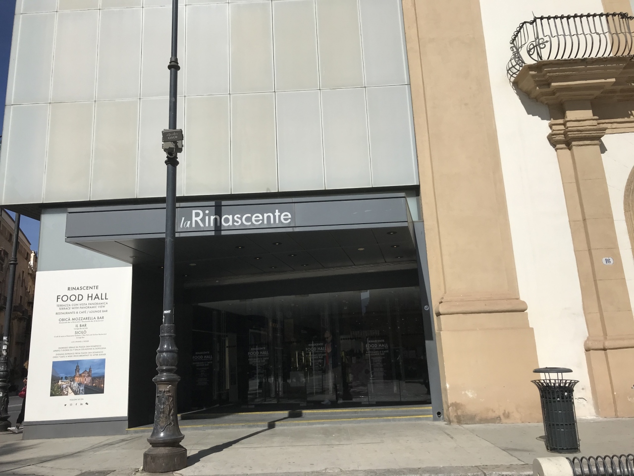 パレルモをぶらぶらする際、トイレ場所を確保しておきたくて行ってみました。普通のデパートですが、小さめです。フロア案内を見て、トイレが4階にあるのはわかったのですが、なかなか見つけられませんでいた。日本だと、トイレやエスカレーター、エレベーターなどがどっちにあるか看板が天井部分についていることが多いのですが、ほとんどそれらしきものが見当たりませんでした。やっと見つけたのは、カフェと反対側、扉を開けてフロアからいったん出たところにありました。