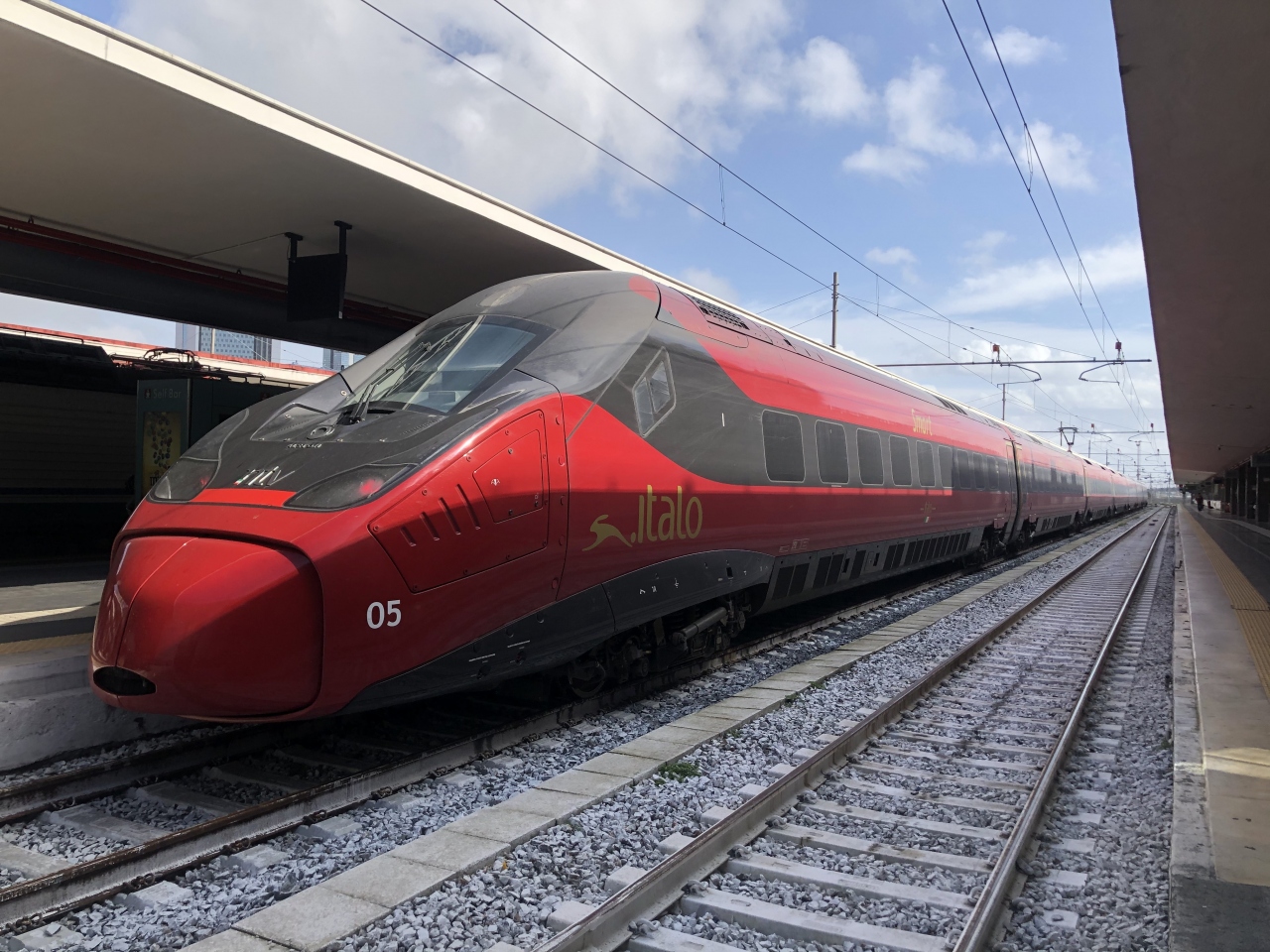 ナポリからローマまで利用しました。乗車時間はほぼ1時間、東京から名古屋までといった感じ。同じ路線をフレッチャロッサも走っていますが、フェラーリのデザイナーが車体デザインをしたということで、こっちを選んでしまった。