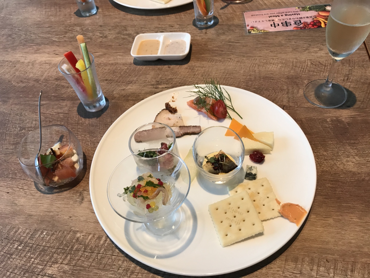 食事は和に寄せたフレンチ、メニューは料理をイメージした詩的なフレーズだけ書いてあって、それだけじゃ何が出てくるかわからないという斬新さ、ワインとともにじっくりゆっくり楽しめました。
