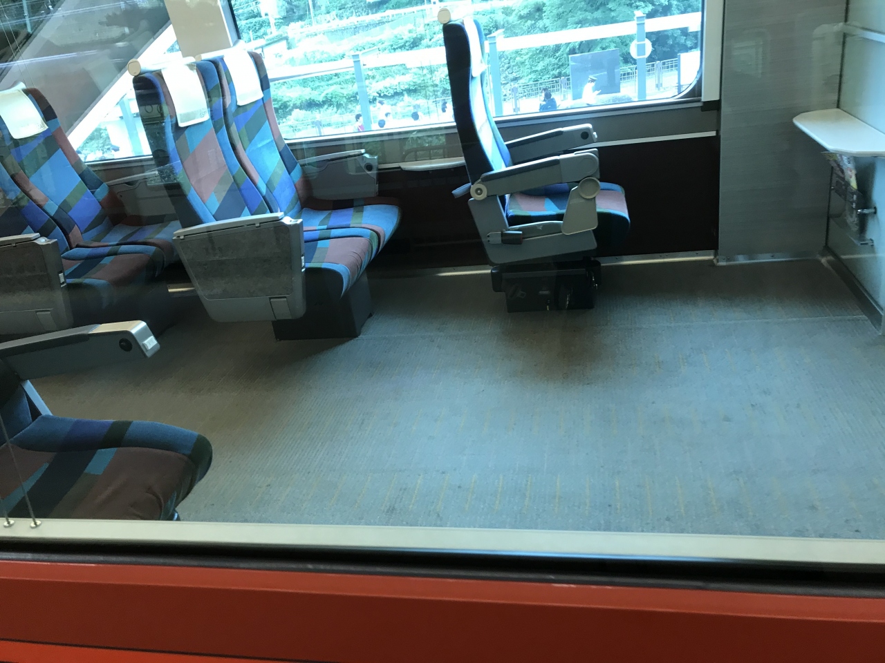 座席は2列ー1列で、車両中央に向かい合わせの座席があって、その前後は同一方向。日本の新幹線と違って座席の向きを変えられないから、ずっと後ろ向きで走っている座席もあるということ。どうなんだろう。