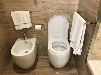 バスルームはバスタブもあって日本人受けは良さそうだが、なぜかタオル掛けがトイレ脇で、構造がおかしいんじゃないかと思った。アメニティも最低限で、しかも備え付けのポンプ式、部屋の内装は一見豪華だけど、どちらかというとビジネスホテルっぽい感じ。