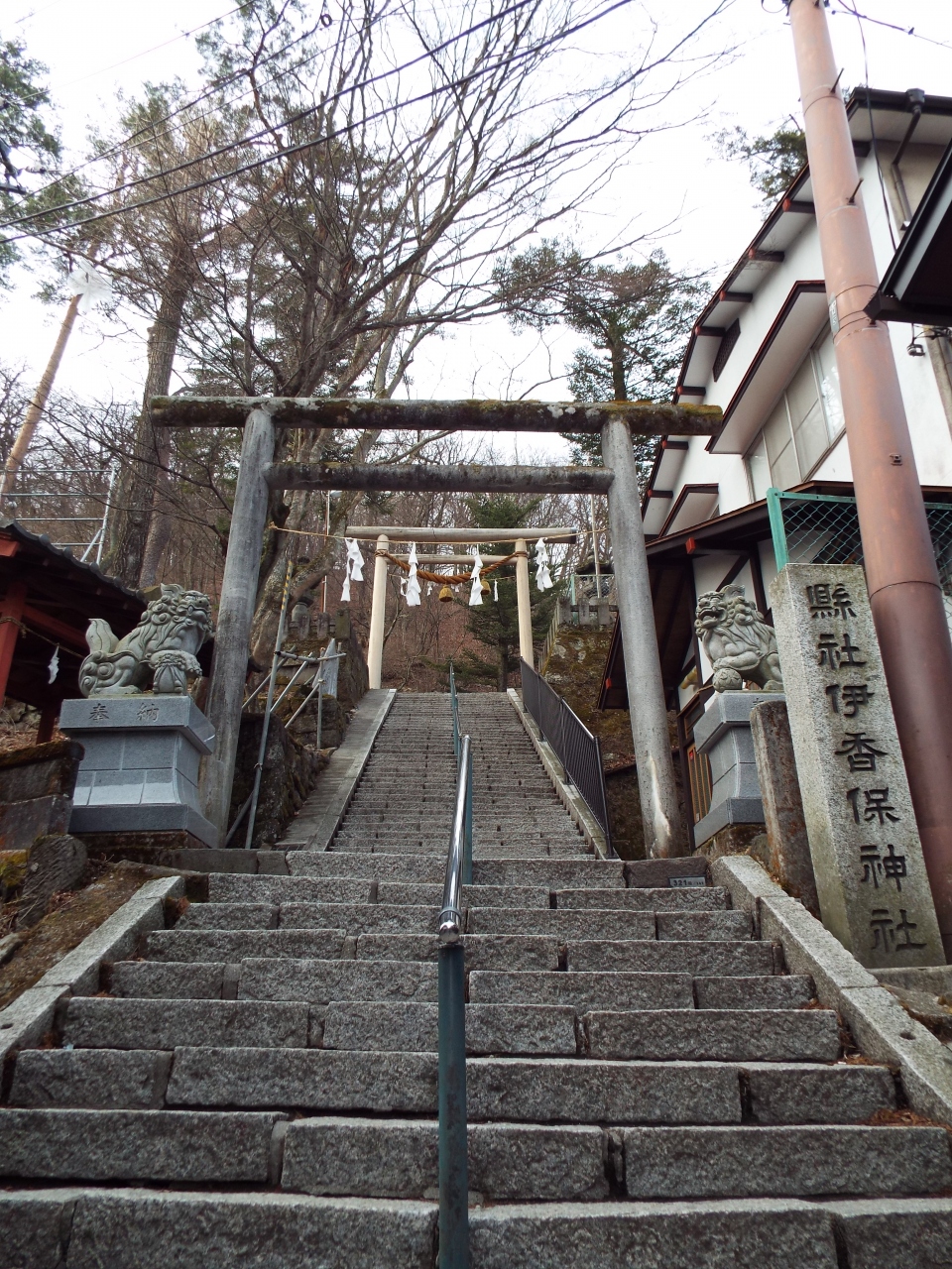 裏口から出て階段を少し登ると、伊香保神社があって、とても静かで落ち着く温泉地です。廊下の羽目ごろしの窓からは、雪が残る三国山地を眺めることができました。 眺めが良くて、静かな部屋です。できるだけ上の階が望ましいと思います。