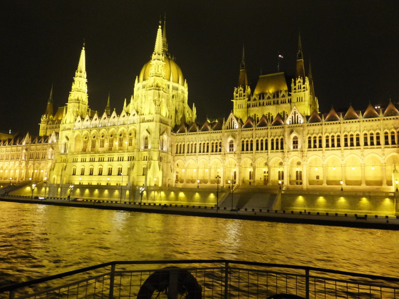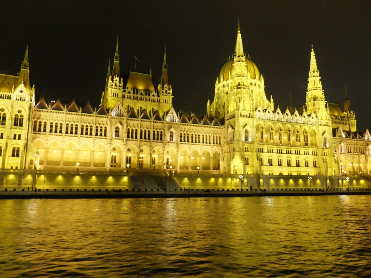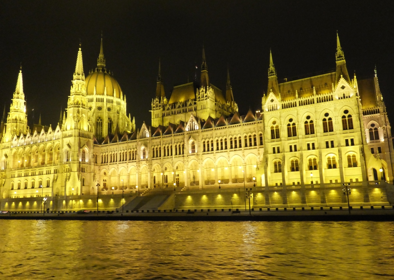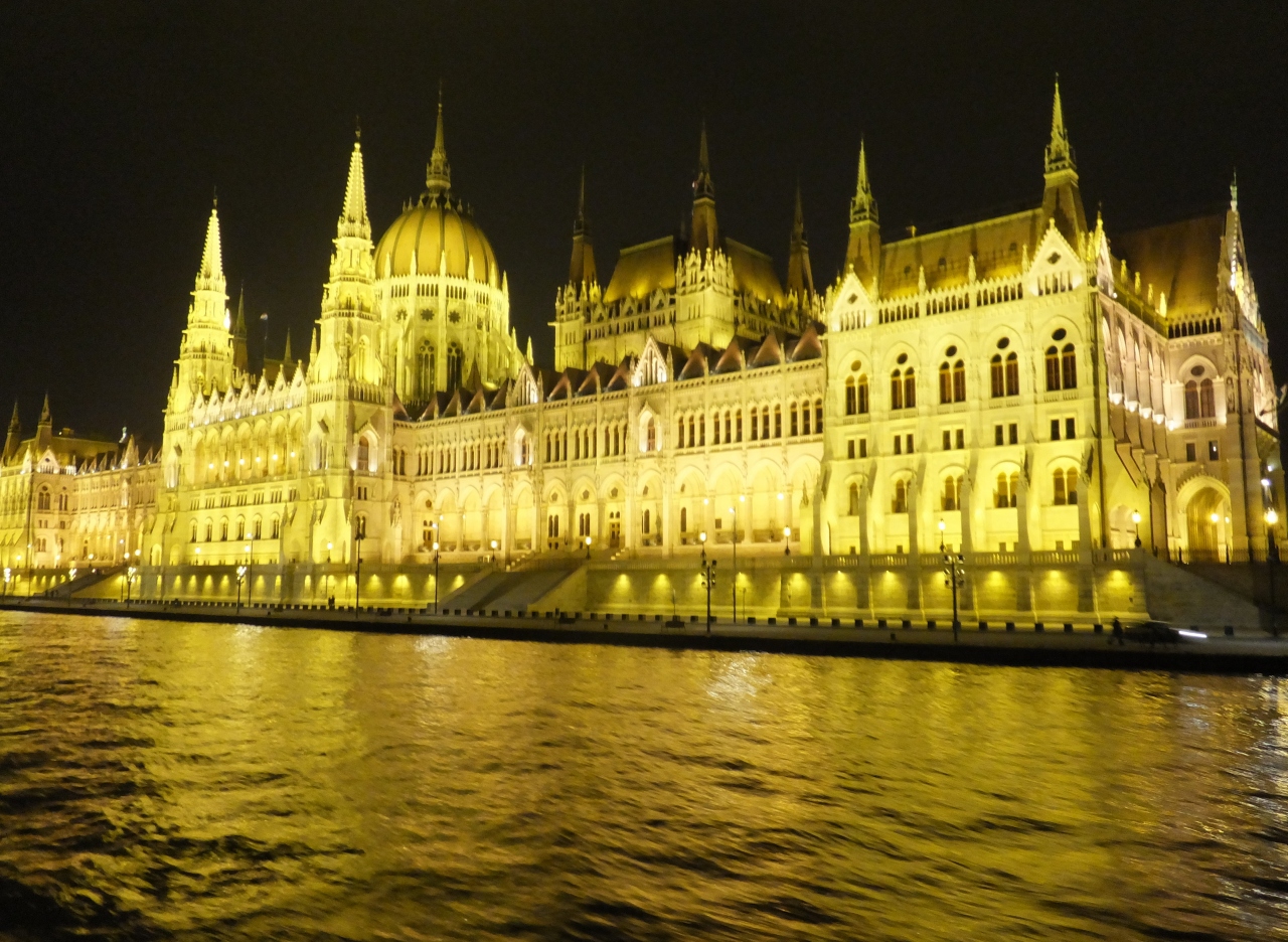 - ドナウ川クルーズでの国会議事堂は黄金の輝きです。