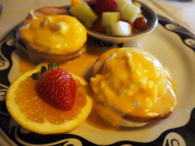 朝食はホテルでエッグベネディクトを食べましたがベーコンがスパイシーでちょときつかったです