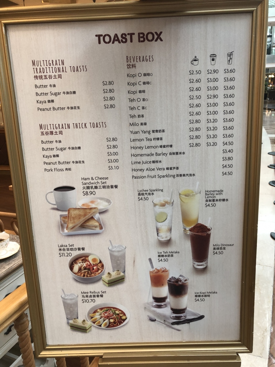シンガポールの朝食で有名なカヤトーストを食べに行きました。甘いカヤジャムも卵につけるのも新鮮で美味しかったです。この店はチェーン店なのでシンガポールの色々なところで見かけました。お店は白が基調となりきれいで、メニューも豊富でした。